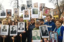 Уже по сложившейся традиции все педагоги, ученики и родители встали сегодня в один строй, чтоб отдать дань и почтить память своих родных и близких погибших на войне и тех, кто прошел всю войну и гордо носит звание ветерана! В каждом доме есть свой герой, всех коснулась черным крылом проклятая война. Долг каждого принять участие в этом грандиозном шествии и пронести, высоко подняв, портрет своего героя.
