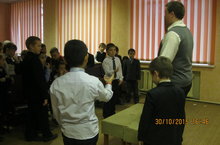 Таланов Константин ученик 10 класса провел урок добра для младших школьников. В малом зале школы он учил ребят различным веселым фокусам разгадывал с ними тематические шарады и математические смешные уравнения. Ребятам очень понравился такой урок.