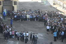 В школе прозвучала учебная тревога. Все ученики и сотрудники школы эвакуировались в положенное время.