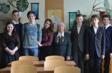 Ветеран школы Дудырева Анжелика Степановна встретилась сегодня с учениками 9 классов. Заслуженный педагог рассказала ребятам о непростых послевоенных годах, об учителях и учениках военных и послевоенных лет. Много добрых слов прозвучало в адрес педагогов ветеранов и от учеников школы, они преподнесли Анжелике Степановне небольшой подарок и поздравили с наступающим праздником.