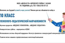 Мы начинаем набор в 10 класс(2023-2024 гг.) психолого-педагогической направленности в рамках проекта "Новый педагогический класс Казани" совместно с К(П)ФУ с 30.06.2023 года... Это новые возможности в непрерывно меняющемся мире!