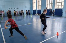 Сегодняшний день в лагере прошел под девизом " В здоровом теле - здоровый дух! Сначала ребята сделали утреннюю гимнастику, а затем в спортивном зале прошли веселые старты.