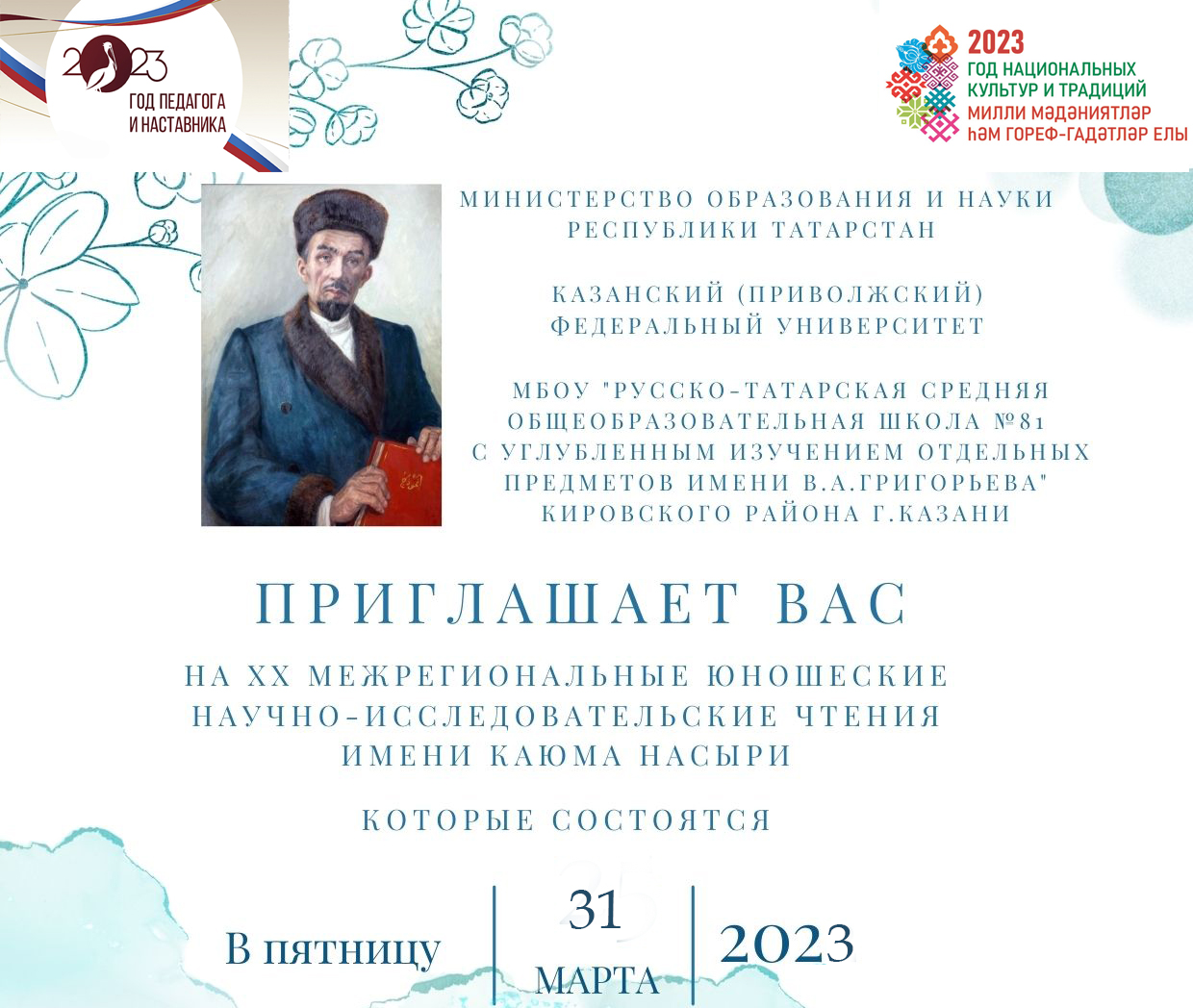 XXI Межрегиональные юношеские научно-исследовательские чтения имени Каюма Насыйри. 31.03.2023