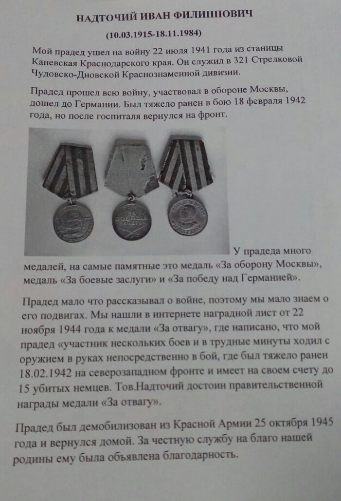 Рассказ ученика 6"а" класса Назарова Ивана о своем прадедушке