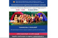 «Республиканское родительское интернет-собрание» по актуальным вопросам организации летнего отдыха и развития детей в летний период "Каникулы с пользой" Подключайтесь и задавайте свои вопросы специалистам!