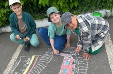 Сегодня в пришкольном лагере "Олимп" прошел конкурс рисунков на асфальте.Ребята с удовольствием взялись за цветные мелки и превратили серый асфальт в красочное полето для фантазии. Благодарим всех участников, воспитателей и организаторов за этот яркий и запоминающийся день!