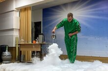 Дети увидели, как за считанные секунды замораживаются цветы и фрукты, как создается эффектный «дымный взрыв», и даже смогли потрогать ледяные облака! Особый восторг вызвал момент, когда обычные предметы после заморозки становились хрупкими, как стекло.