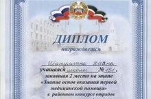 Поздравляем Ибатуллину Д., занявшую 2 место на этапе "Знание основ оказания первой медицинской помощи в районном конкурсе отрядов юных инспекторов движения "Безопасное колесо - 2017".
