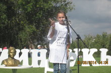 Назипова Илзия "Литературный дворик" конкурсында гимназия данын яклады. Ул конкурста үзе язган шигырьләрне укыды.