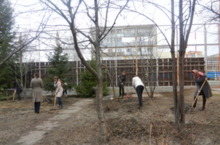 Сегодня учителя нашей гимназии вышли на уборки территории гимназии.
