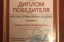 Ученица гимназии № 122 им. Ж.А. Зайцевой, Фирсова Дарья, стала победительницей Всероссийского конкурса сочинений "Россия, устремленная в будущее"