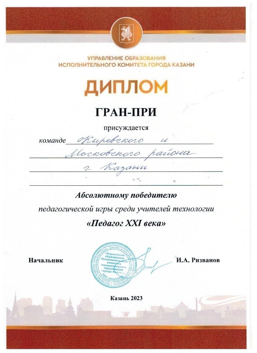 Опубликовано: 02.03.20232 марта 2023 года на базе МБОУ "Гимназия № 20 "Гармония" Московского района г. Казани состоялась педагогическая игра для учителей технологии "Педагог XXI века". От нашего района команду представили: