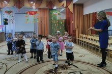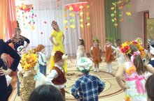28 октября в нашем детском саду тоже прошёл осенний утренник. Красавица Осень заглянула к детям в группу со своими щедрыми подарками, никого не оставила без внимания, а дети встречали её как дорогую гостью — с песнями, танцами, сказками, играми! Дети исполнили песни: «Осень в гости к нам пришла», «Осень милая шуршит», исполнили танец с осенними листочками. В гости к осени пришли милые грибочки-мухоморчикиа. В гостях у ребят побывали лесные звери. Дружно отгадывали воспитанники ДОУ и зверята осенние загадки, играли в веселые игры и забавы. В инсценировке были использованы следующие персонажи: зайчик, который принёс корзинку с овощами и фруктами, белочка пришла с корзинкой, наполненной шишками, медведь с бочонком мёда нового урожая, ёжик с яблоками и грушами.