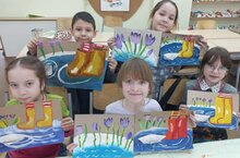 «К нам весна шагает быстрыми шагами». Юные художники изостудии «Оранжевое небо» (педагог Заляева Резеда Рашидовна) создают весеннее настроение! А помогают им в этом гуашь, бумага и вдохновение!