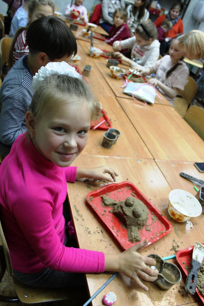 19 и 21 октября 2019 года в объединение ИЗО «Ступени» в группах №2, №4 прошло открытое занятие для родителей (педагог Забирова Т. А.). Занятие прошло в форме сюжетно-ролевой игры, где ребята почувствовали себя настоящими художниками-скульпторами, а родители в роли посетителей выставки. Наши гости смогли не только насладиться готовыми скульптурами, но и задать интересующие их вопросы скульпторам, получить на них полные ответы, увидеть сам процесс рождения шедевра в мастерской!