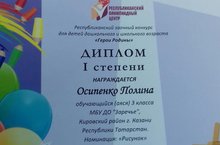 Осипенко Полина, учащаяся объединения "Живая планета", руководитель Качалова А.Д., стала дипломантом 1 степени республиканского конкурса для детей дошкольного и школьного возраста "Герои Родины".Ее рисунок "Спасибо за жизнь"признан лучшим в номинации.