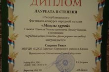 Поздравляем Рината Садриева, лауреата 2 степени Республиканского конкурса «Монлы курай», педагог Нигматзянова Г.Г. Молодец!!! Хороший подарок к Новому году! -