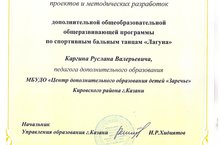 Дополнительная общеобразовательная общеразвивающая программа по спортивным бальным танцам "Лагуна", написанная педагогом дополнительного образования высшей квалификационной категории - Каргиным Р. В., внесена в городской реестр инновационных программ, проектов и методических разработок. Поздравляем Руслана Валерьевича и желаем не останавливаться на достигнутом!
