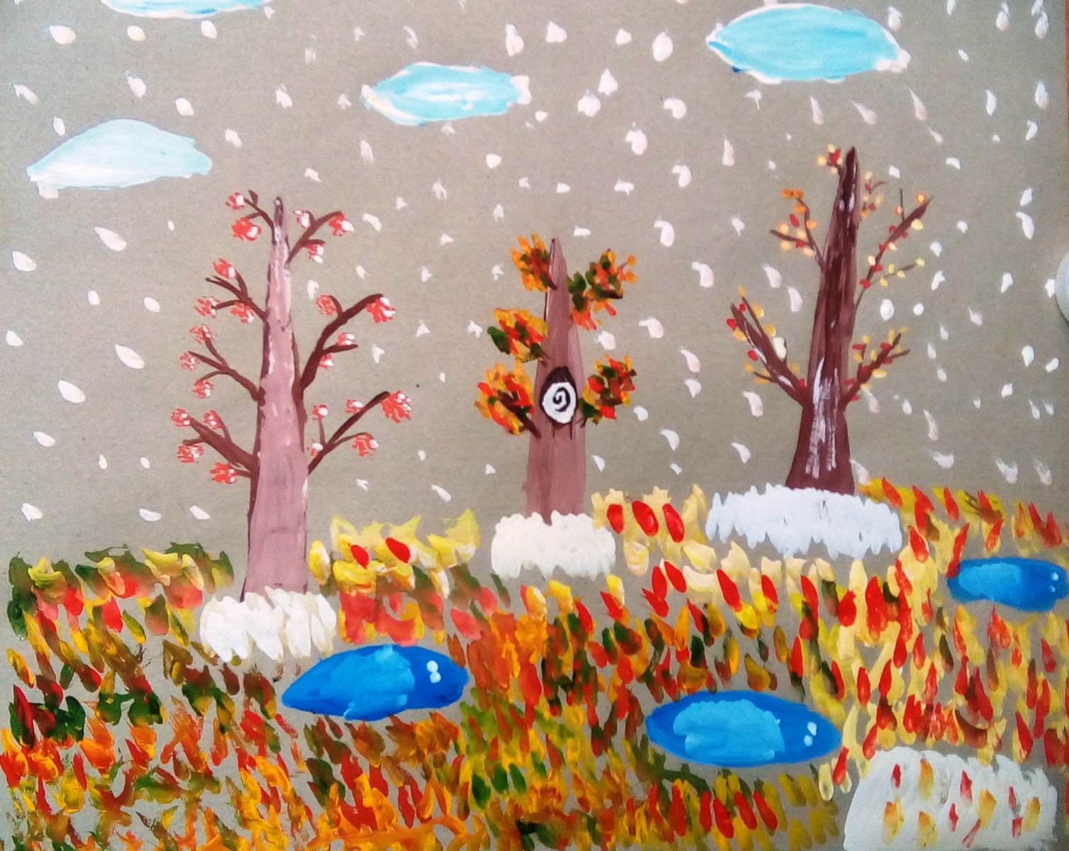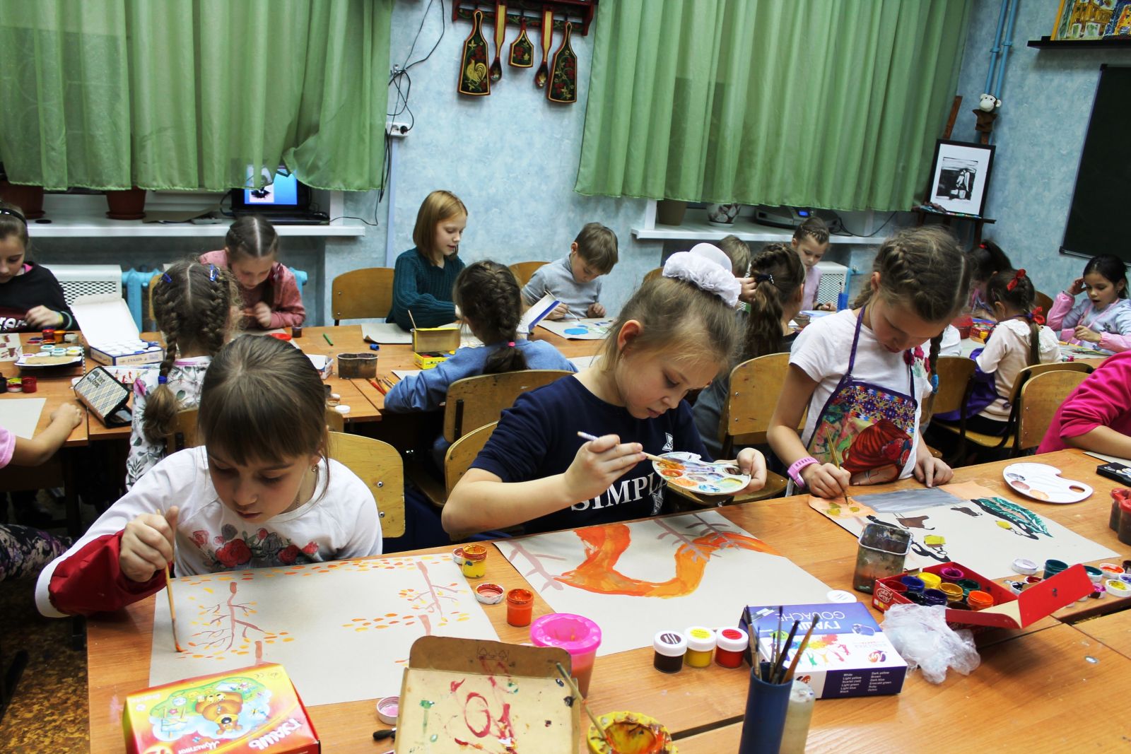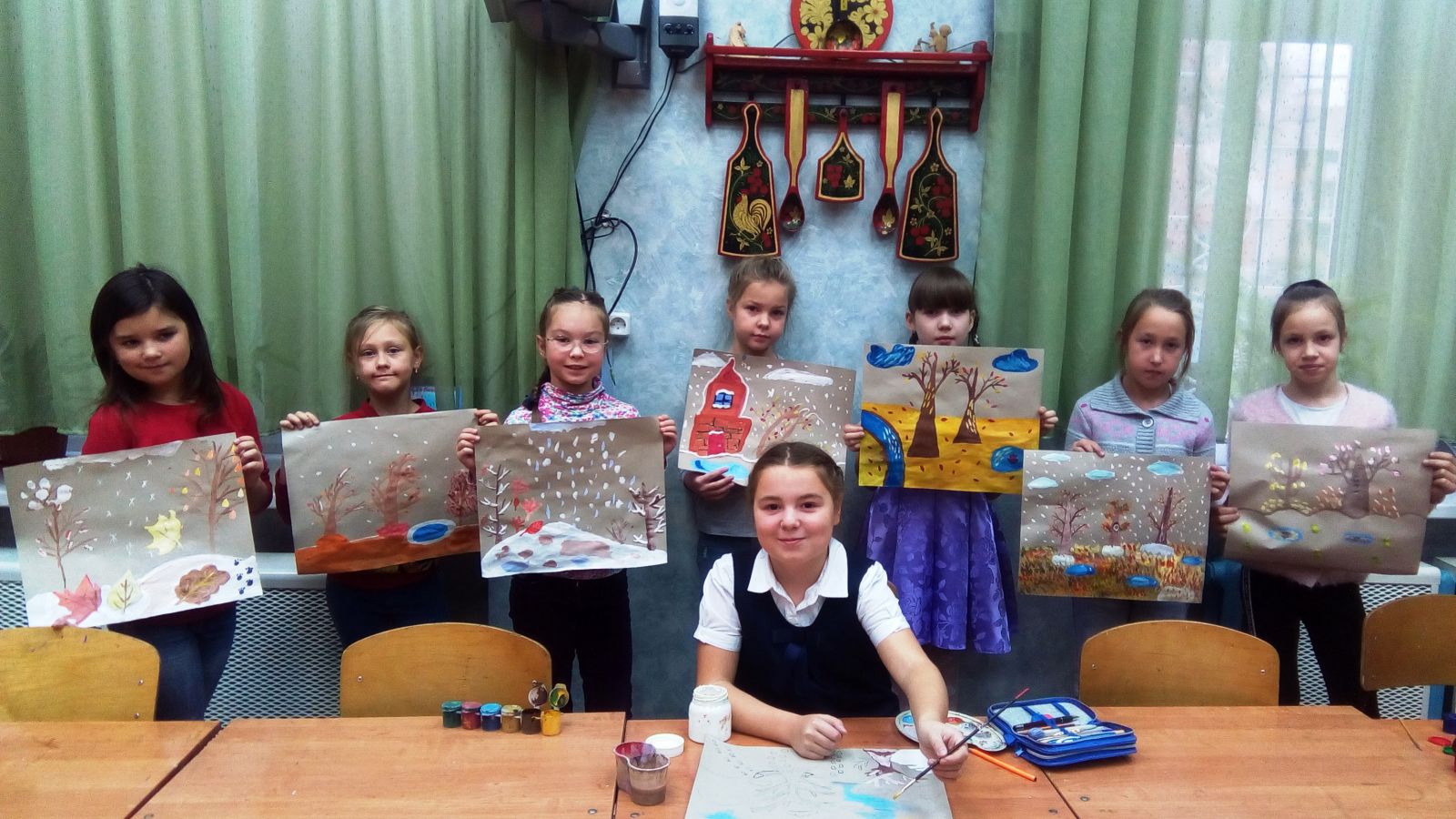 В объединении ИЗО «Ступени» (педагог Забирова Т. А.) в группах №2, №3 прошли открытые занятия для родителей целью которых было обобщить знания учащихся о мифологии древней Греции и создать пейзаж родного края. Слякотная, грязная, холодная природа в ноябре. Задача ребят была изобразить уголок нашей Российской природы именно в самом грустном месяце ноябре. Как? Какие явления природы могут оживить грустный пейзаж? Как природа умеет украшать сама себя? Оказалось, что выполнять ребятам сложные задания просто в удовольствие!