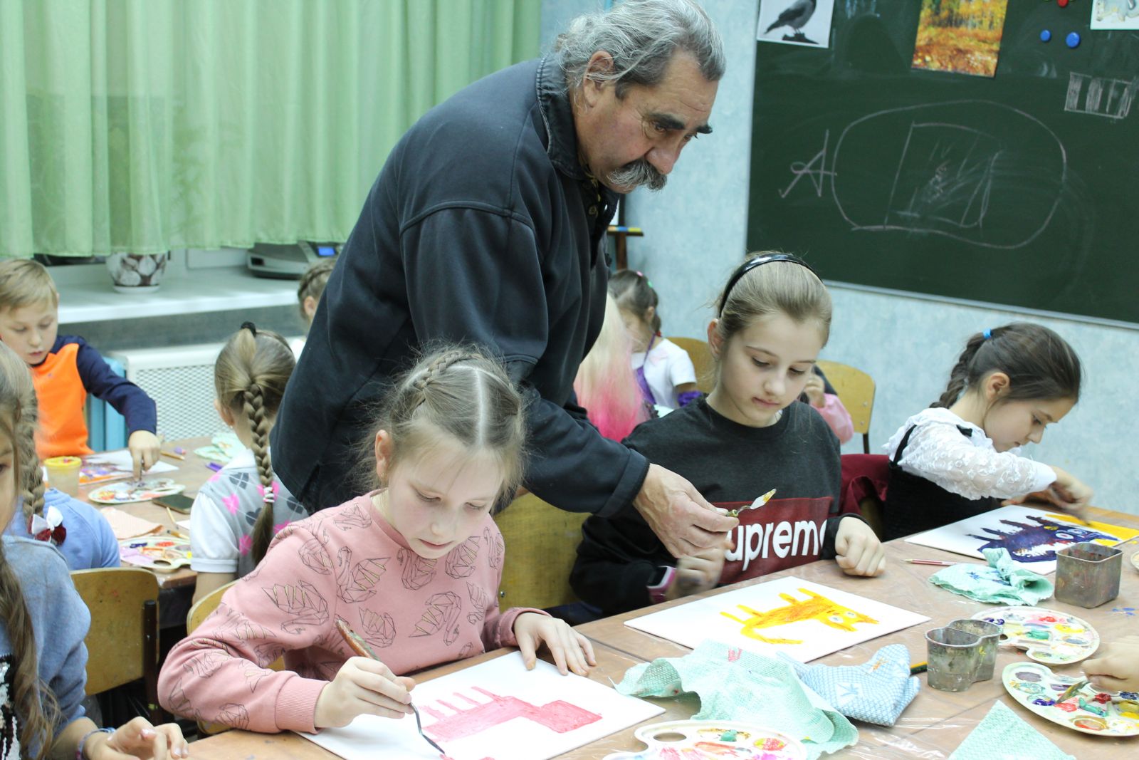 В объединении ИЗО «Ступени» (педагог Забирова Т. А.) прошла долгожданная встреча с заслуженным художником Республики Татарстан Виктором Евгеньевичем Тимофеевым! На занятии ребята задавали художнику вопросы, беседовали с ним и подарком для нас стал мастер-класс! Синий, красный, золотой – настоящий усатый листопад получился у наших юных художников!