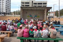 А у нас опять 130 ребят из пришкольных лагерей смотрят спектакль, играют и поют вместе с юными актёрами из театральной студии "Звёздочки Заречья"
