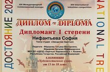 Обучающиеся театра студии «Звёздочки Заречья» под руководством педагогов дополнительного образования Фёдоровой Татьяны Викторовны и Фёдоровой Наталии Владимировны приняли участие в XIV Международном телевизионном конкурсе «Национальное достояние 2023» и стали дипломантами: