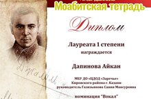 Обучающиеся объединения «Сольное и групповое пение» вокальной студии «ВОКАЛиЯ» под руководством педагога Газизьяновой Сании Мансуровны приняли участие во II Всероссийском межнациональном конкурсе чтецов и вокалистов «Моабитская тетрадь» в честь героя Совестского Союза Мусы Джалиля