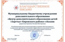 | Короткое название: | МБУДО "ЦДОД "Заречье" Кировского района г. Казани |