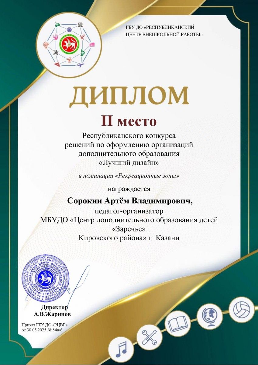 В номинации «Рекреационные зоны» было представлено на конкурс оформление Центра к 80-летию Победы в ВОВ и 2 место в этой номинации получили Сорокин А.В. и Халилова Н.Е.