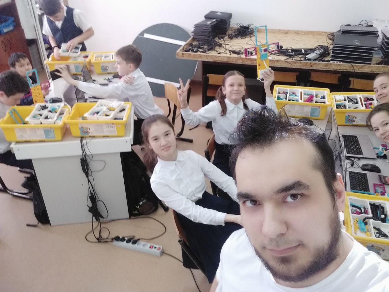 В объединении Робототехника на базе 15 гимназии, педагог Нуризянов Э.Т. прошло открытое занятие на тему "Езда по траектории". Ребята закрепили умения строить модели роботов и работу с датчиком освещенности. Составили алгоритм для движения робота по траектории с двумя датчиками освещенности.
