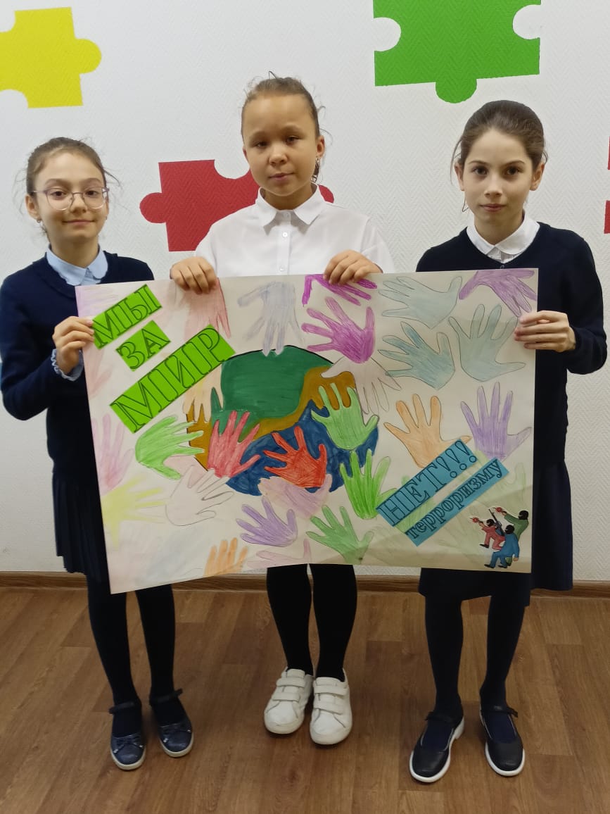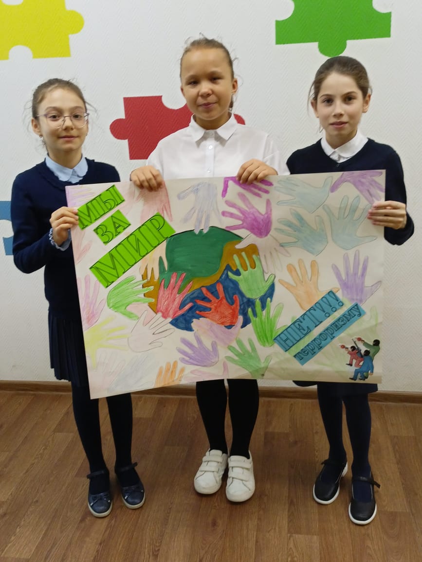 Опубликовано: 30.09.2022На этой неделе в клубе "Полет" прошла беседа по Антитеррору, в которой приняли участие Обучающиеся объединений "Волшебный декор", "Волшебные краски" и "Школы ведущих "Антракт". Дети изготовили плакат "Мы за МИР!".