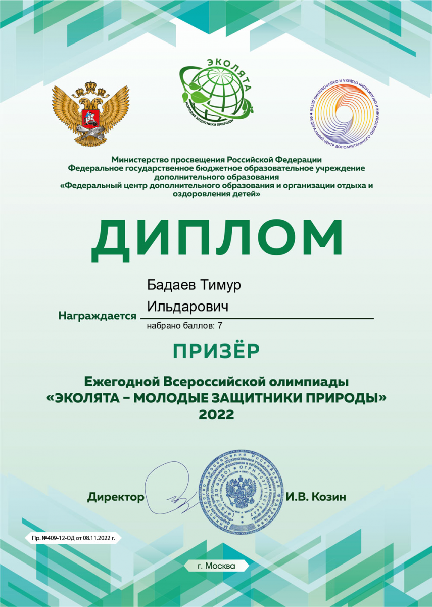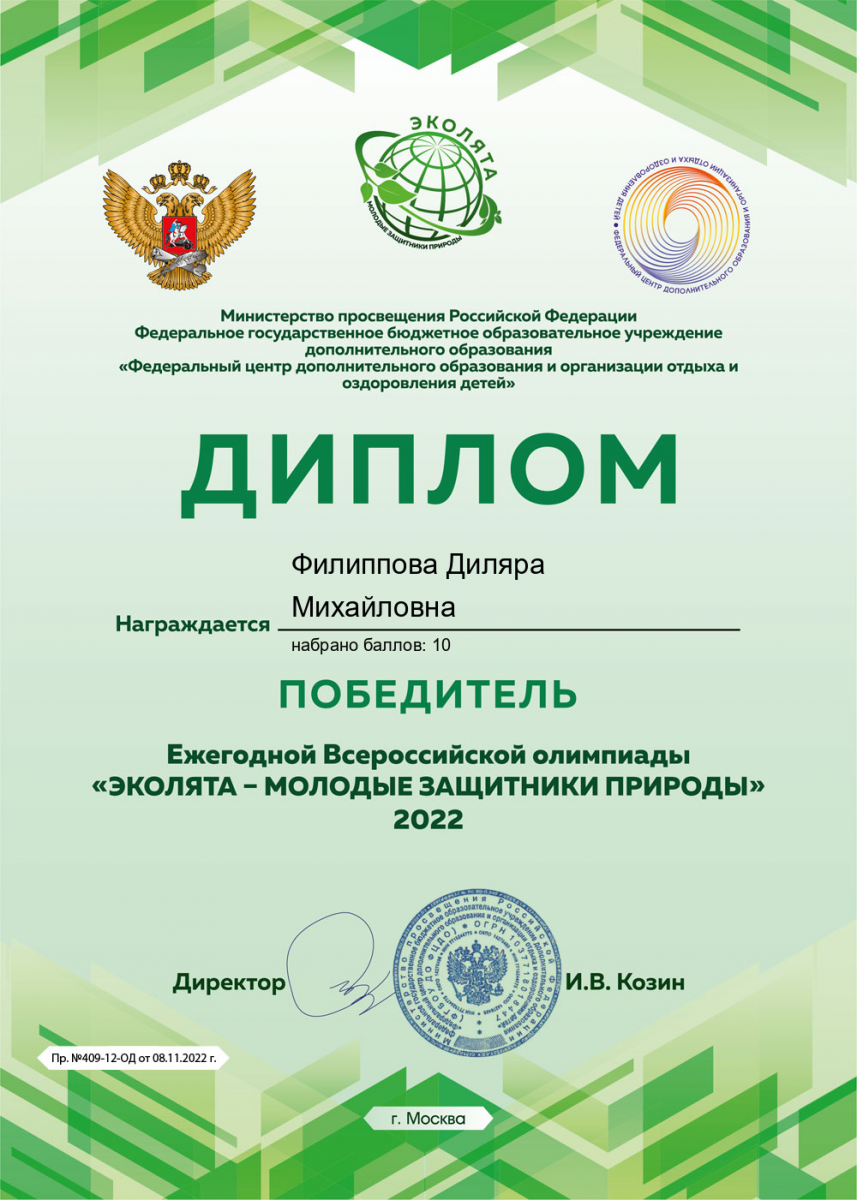 Опубликовано: 22.11.2022Поздравляем учащихся объединения «Ромашка», педагога Сафину Алсу Шарифзяновну с новыми победами! Они стали призёрами и победителями «Ежегодной Всероссийской олимпиады «Эколята-молодые защитники природы 2022»