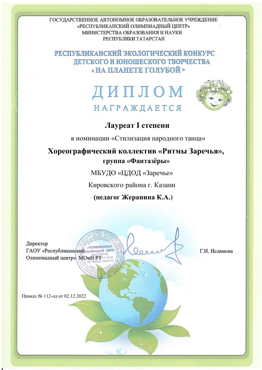Опубликовано: 18.01.2023Поздравляем с успешным выступлением танцевальный коллектив "Ритмы Заречья" (пдо Жеранина К.А.) на Республиканском конкурсе "На планете голубой".