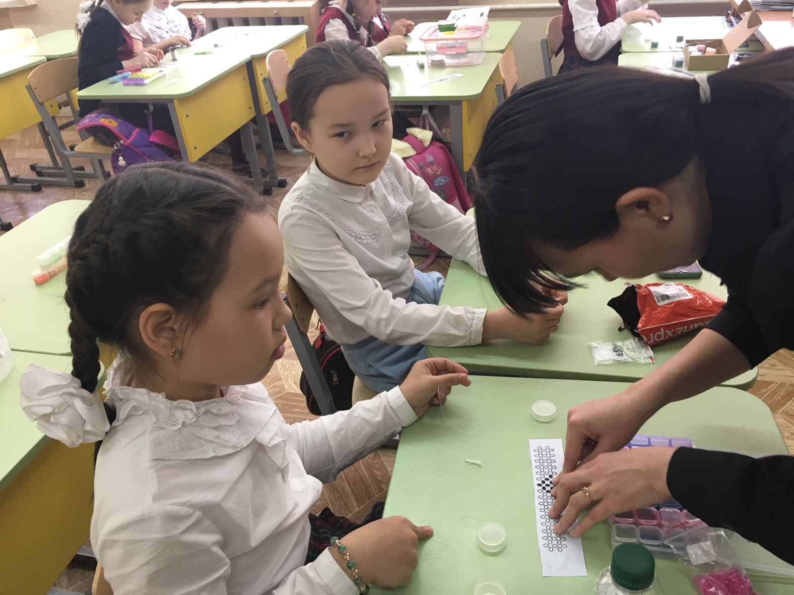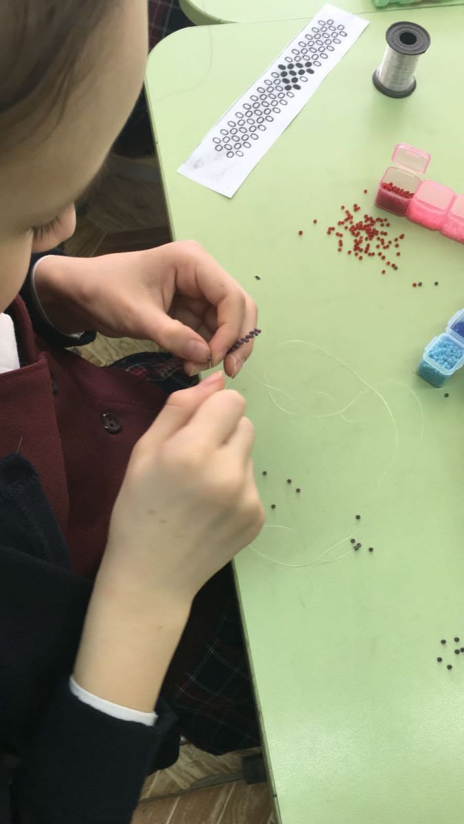 Работа с бисером требует большого внимания и аккуратности, но все справились с этой работой. Получились интересные работы.
