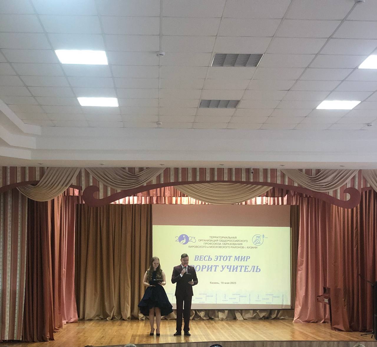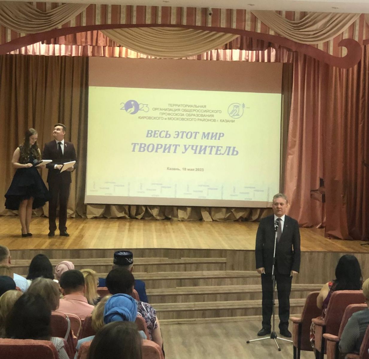 На награждение присутствовали зам. главы администрации Кировского и Московского районов Сугоняко Д. В., заместитель председателя Татарстанской республиканской организации Общероссийского Профсоюза образования Яруллин И. М., помощник депутата КазГорДумы Калимова О. В. -Демина Д. Г., начальник Отдела образования по Кировскому и Московскому районов Ершова Т.К., председатель Территориальной организации Общероссийского Профсоюза образования Кировского и Московского районов Закиров И.С., заведующая информационно-методическим сектором отдела образования по Кировскому и Московскому районам Яранова Л. М. Профсоюзная организация поощрила педагогов ценными подарками -туром выходного дня, речным круизом Казань-Нижний Новгород, билетами в театры им. Качалова и Г. Камала, билетами на представление Московского цирка на Цветном бульваре. Праздник получился ярким благодаря учащимся и педагогам ЦДОД "Заречье" - студии бальных танцев "Лагуна", педагог Каргин Р. В., вокальной студии "Мечта", педагог Вершинина Е. Н, и сольному выступлению педагога-хореографа Филатова Д. А.