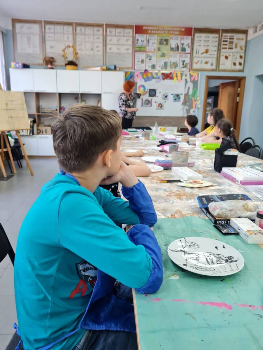 С руководителем объединения Паршуковой Натальей Николаевной ребята повторили пройденные материалы, разобрали детали работы с акрилом по керамике, и расписали тарелочки по своему дизайну