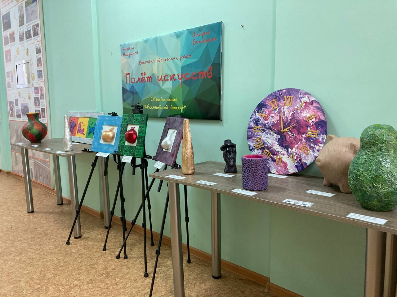 Опубликовано: 22.05.2023«Полёт искусств» - Выставка творческих работ педагога нашего Центра Агафонова Кирилла Эдуардовича. На выставке представлены образцы работ в разных техниках. Своё мастерство и опыт Кирилл Эдуардович передаёт обучающимся на занятиях в объединении «Волшебный декор».