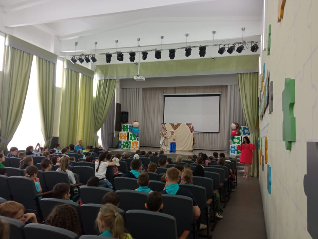 Опубликовано: 20.06.2023А у нас опять 130 ребят из пришкольных лагерей смотрят спектакль, играют и поют вместе с юными актёрами из театральной студии "Звёздочки Заречья"