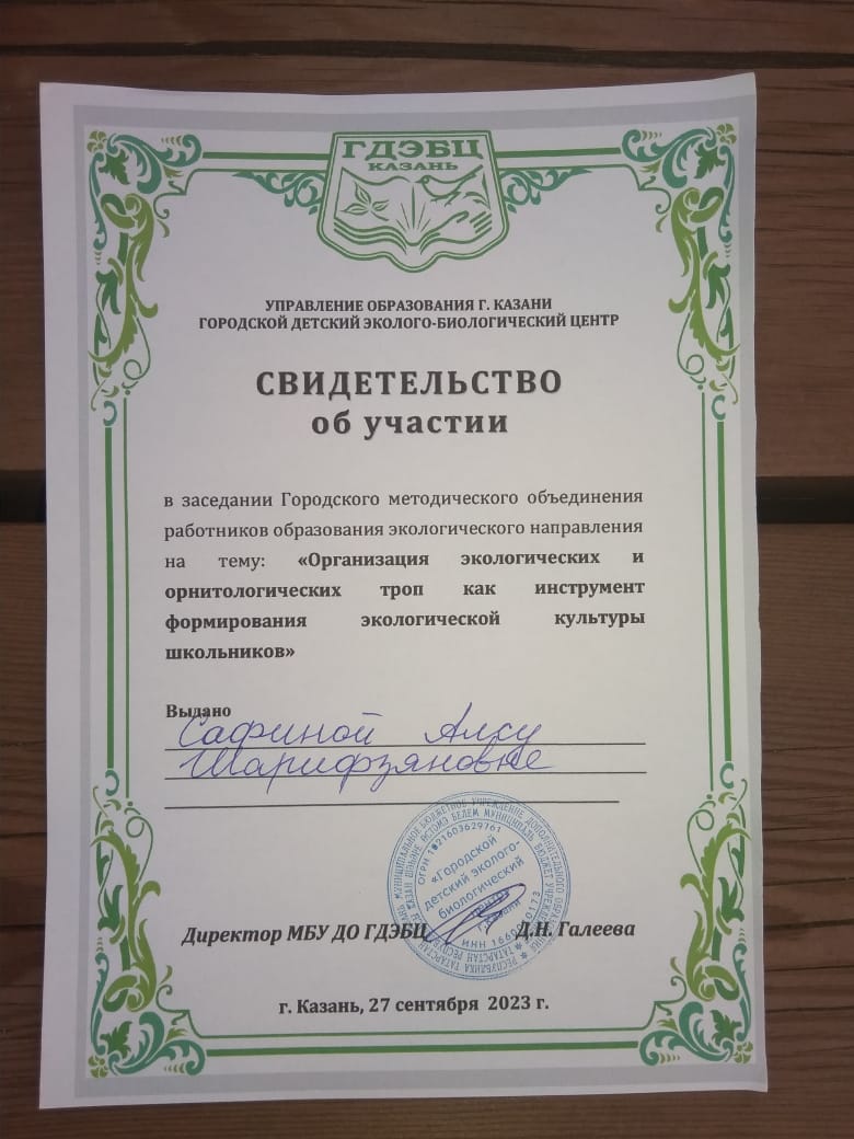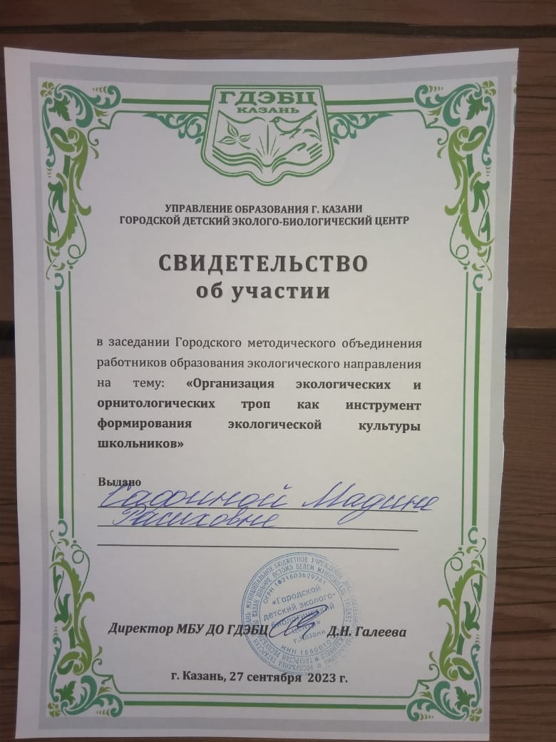 Опубликовано: 27.09.2023Педагоги Центра Сафина М.Р. и Сафина А.Ш. участвовали сегодня в работе городского методического объединения в Эко-центре "ДОМ" по теме: "Организация экологических и орнитологических троп как инструмент формирования экологической культуры школьников"