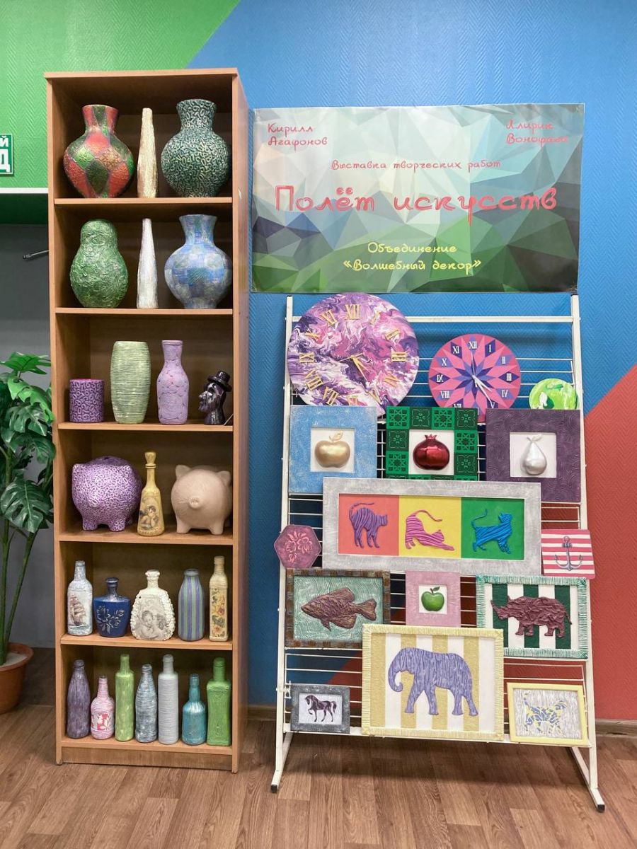 Опубликовано: 04.10.2023В клубе "Полёт" организована выставка творческих работ педагога объединения "Волшебный декор" Агафонова Кирилла Эдуардовича.