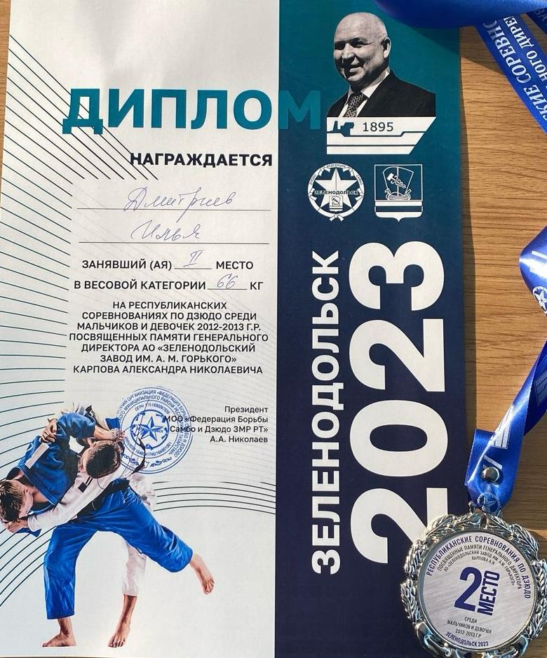 Опубликовано: 07.11.2023Прошли республиканские соревнования по дзюдо, где наш Чемпион, Дмитриев Илья, занял почетное 2 место! Поздравляем Илью и Мазаева Александра Владимировича (педагог объединения «Дзюдо») с отличным началом. Желаем дальнейших побед