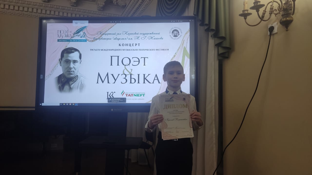 Опубликовано: 02.02.2024Обучающийся объединения «Поэтический микрофон» (педагог Гаврилова О.А.) Коротышкин Ярослав принял участие в III Международном музыкально-поэтическом фестивале «Поэт и музыка» имени Мусы Джалиля.