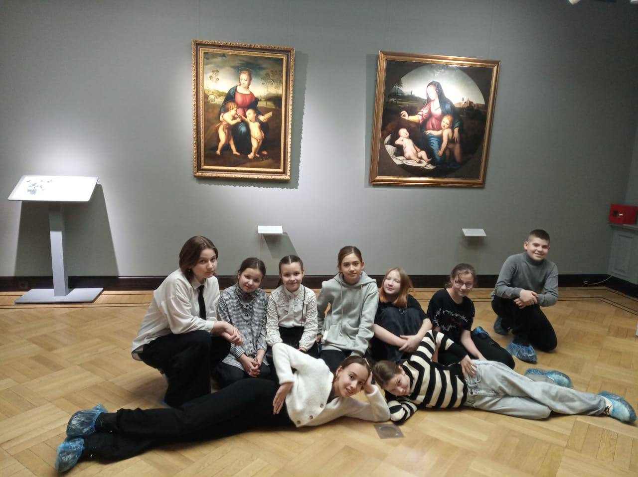Опубликовано: 05.02.2024Ребята из объединения ИЗО «Ступени» посетили музей изобразительных искусств РТ – Выставка «Рафаэль. Версии» из Музея Академии Художеств (г. Санкт-Петербург). Выставка, приуроченная к 540-летию со дня рождения Рафаэля Санти (1483–1520) и к Году педагога и наставника, объявленного в России в 2023 году, включает в себя более пятидесяти произведений русского и зарубежного копийного искусства, созданных по выдающимся произведениям Рафаэля из коллекции Музея Академии художеств Санкт-Петербурга, позволяющие достаточно полно проследить основные этапы жизни и творчества одного из крупнейших художников эпохи Высокого Возрождения.