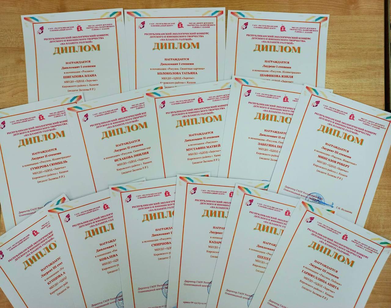 Опубликовано: 14.02.2024Настоящим звездопадом (14 дипломов!) завершилось участие юных художников изостудии ОРАНЖЕВОЕ НЕБО (педагог Заляева Р.Р.) в Республиканском экологическом конкурсе "На планете голубой»