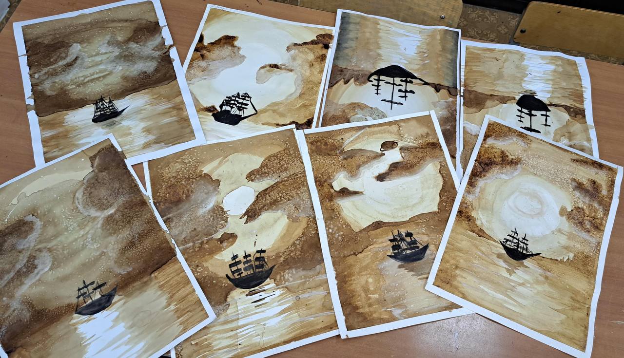 «Кофе-арт» — это оригинальная техника создания картин с помощью кофейного раствора. Для рисования можно использовать заваренный молотый кофе. В работе с детьми легче использовать растворимый кофе в гранулах. Именно растворимый гранулированный кофе даёт насыщенный, почти чёрный тон. И это позволяет делать рисунки контрастными, от самых светлых оттенков до глубоких тёмных акцентов.