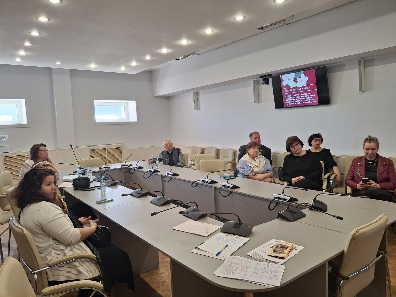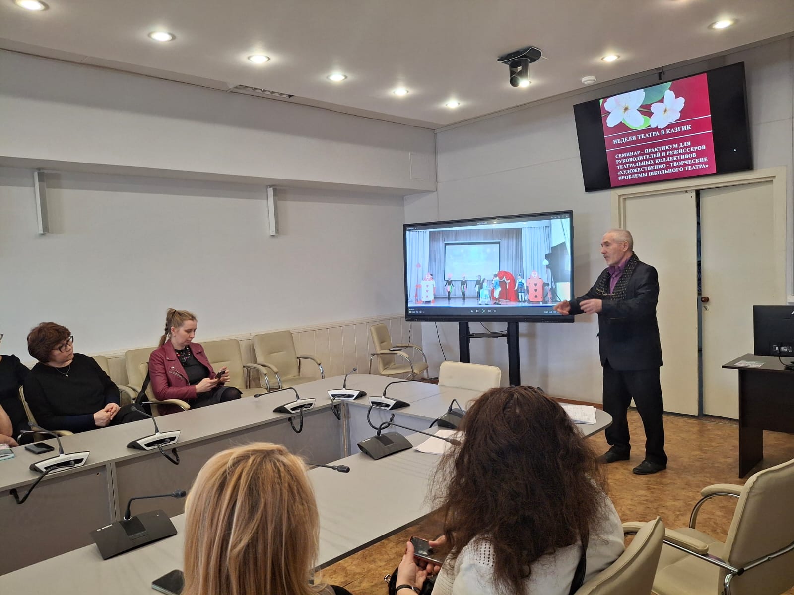 Опубликовано: 25.03.2025Сегодня в КазГИК состоялся семинар-практикум для руководителей школьных театральных коллективов «Художественно-творческие проблемы школьного театра», на котором обсуждали итоги Городского театрального фестиваля «Да здравствует театр!». На семинаре присутствовали доценты кафедры театра, кино и телевидения Кайнова А.Н., Шарипов Р.Т., Мубараков М.С. и Халилова Н.Е. — куратор проекта «Школьные театры г. Казани»