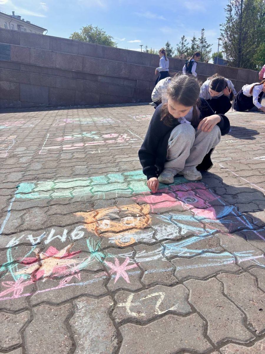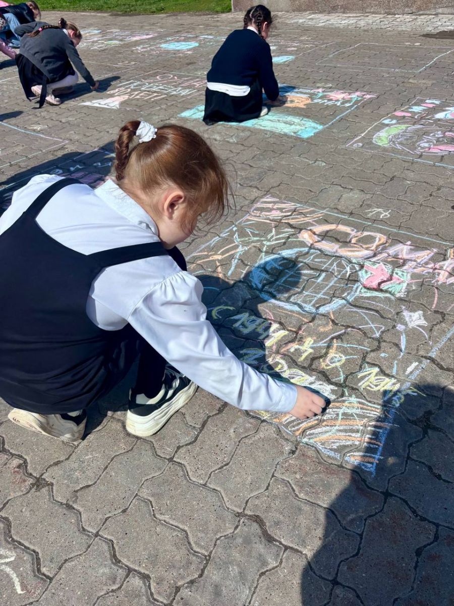 В рамках мероприятия состоялся яркий и трогательный конкурс рисунков на асфальте «Я рисую Победу». Дети с вдохновением создавали открытки, памятные рисунки и символы Великой Победы, отдавая дань уважения героям и ветеранам.