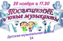 28 ноября в ДМШ №24 состоялось торжественное Посвящение первоклассников в Музыканты! Первоклассники показали, чему научились за небольшой период, исполняли музыкльные произведения, отгадывали загадки, читали стихи. Подготовили музыкальные поздравления и учащиеся старших классов. Кульминацией праздника стало вручение памятных дипломов и сладких подарков. Ребята, родители и преподаватели остались довольны!