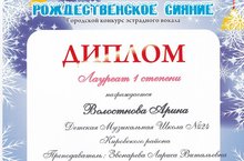 Ученица Васильевой Ольги Олеговны Корнеева Варвара стала Лауреатом III степени Международного фестиваля-конкурса "Рождественская сказка". Поздравляем!!!! Благодарим за труд!!!