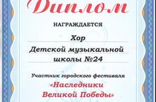 ПОЗДРАВЛЯЕМ ХОР ДМШ № 24 С УСПЕШНЫМ УЧАСТИЕМ В ГОРОДСКОМ ФЕСТИВАЛЕ 2НАСЛЕДНИКИ ВЕЛИКОЙ ПОБЕДЫ".МОЛОДЦЫ!!!! 09.06.2017